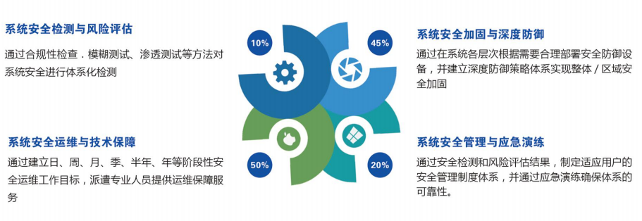 通過建立日、周、月、季、半年、年等階段性安全運(yùn)維工作目標(biāo),派遣專業(yè)人員提供運(yùn)維保障服務(wù),服務(wù)內(nèi)容涵蓋日常巡檢、補(bǔ)丁升級(jí)、系統(tǒng)審計(jì)、滲透檢測(cè)等多個(gè)層面,落實(shí)運(yùn)維工作的各個(gè)細(xì)節(jié),環(huán)環(huán)相扣,穩(wěn)定運(yùn)維。